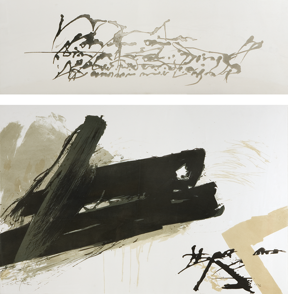 Thèmes, lithographie, écriture au pinceau, 45 x 43 cm